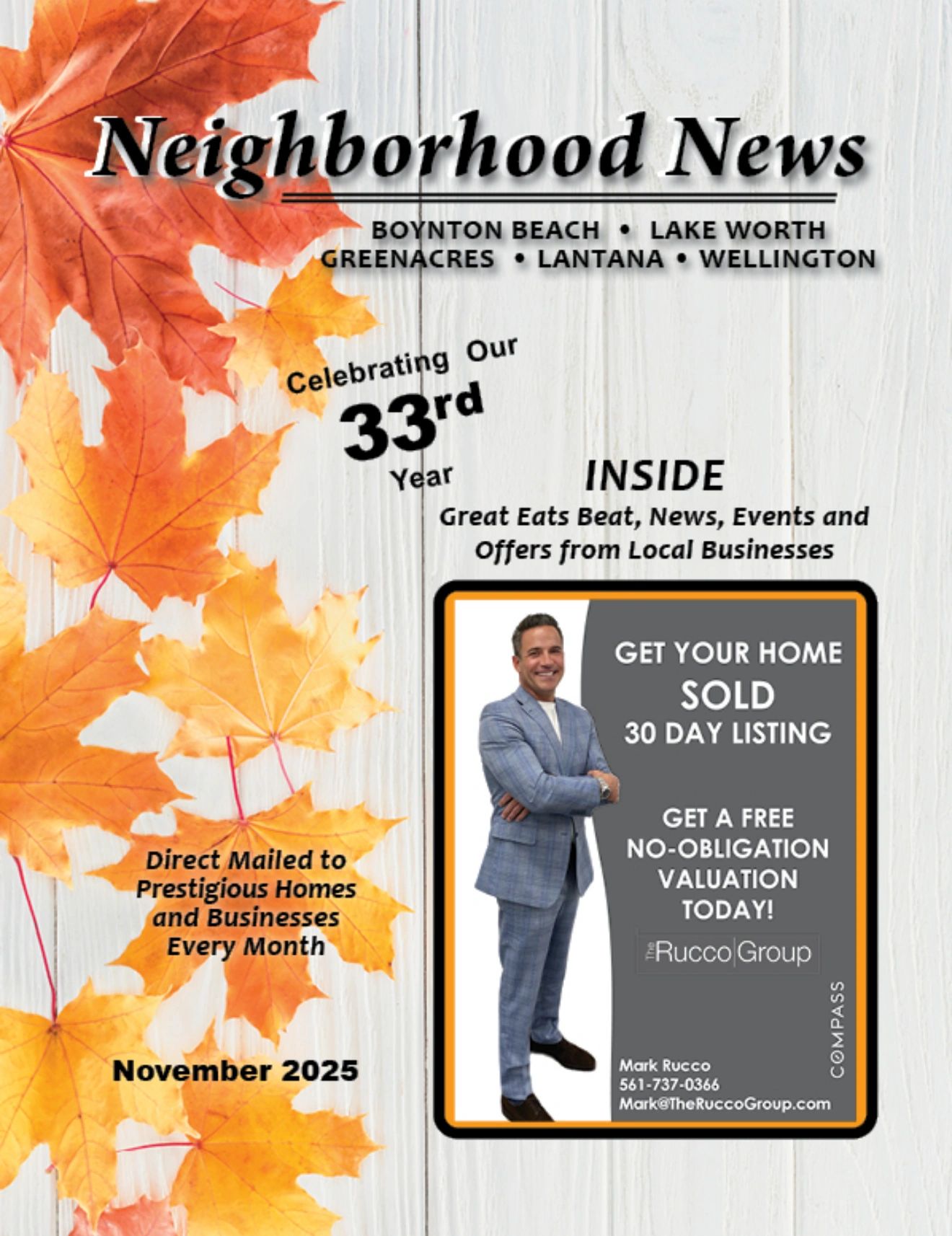 Neighborhood News has been serving the prestigious communities of Boynton Beach and Lake Worth for the past 33 years. To find out if you're one of the 17,500 homes that Neighborhood News is direct mailed to, head on over to Advertise With Us.